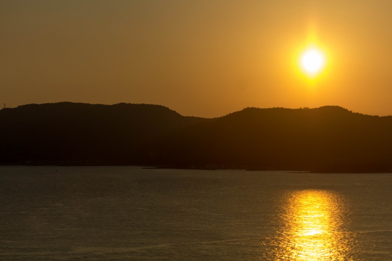 最後は海峡を渡る途中にある「与島PA」からの夕日です。