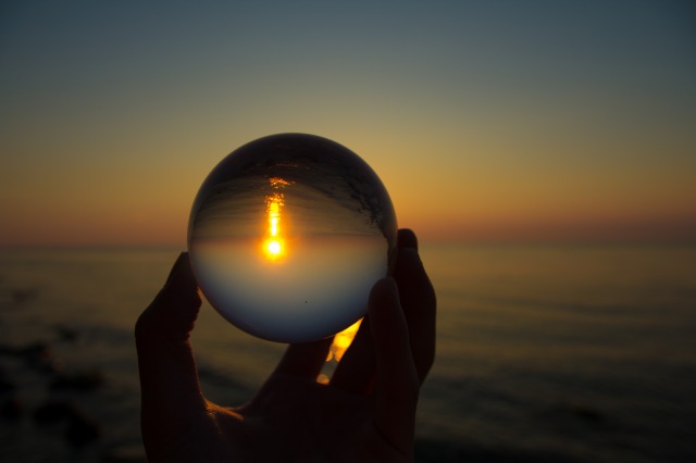 ↑本物の夕日を水晶玉で隠し、水晶玉の中でひっくり返った夕日を楽しむパターン