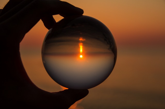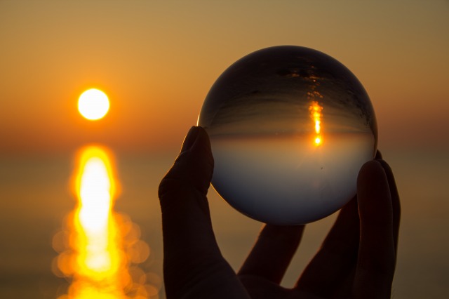 最近SNSでよく見るようになった水晶玉(クリスタルボール)越しの写真。