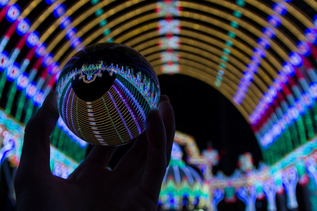 先ほども乗せたルミナリエの写真は、この光の壁1枚をまるごと水晶玉に閉じ込めようと画策しています。