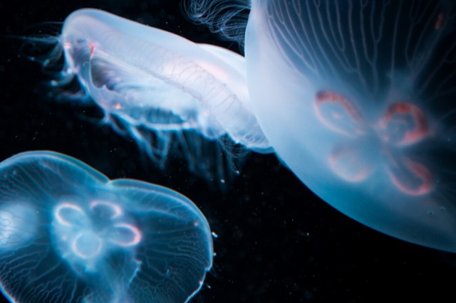 沢山泳いでいるのでピントを合わせる対象を決めて、手前・奥のクラゲをボカすことで奥行き感が出ればいいなと思い、絞りは開放気味で撮影しました。