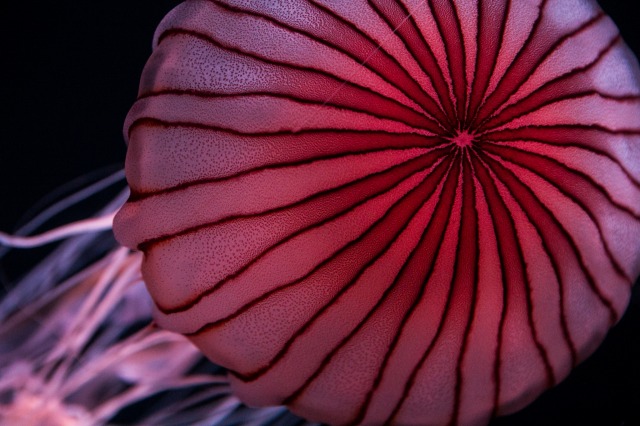 こちら、(たぶん)アカクラゲです。妖艶な模様をクッキリ写せるスポットに来るまで粘りまっした。動きはやはり遅いのでマニュアルフォーカスで合わせに行くのがやりやすいです。