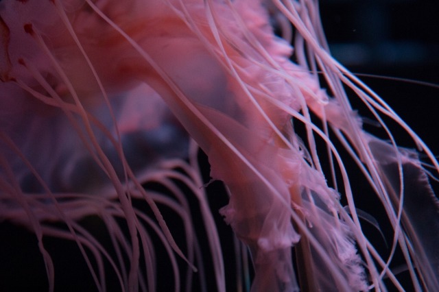 動きの遅いクラゲといえど、水にゆられて動く触手や動いている傘の部分は局所的に速く動いているので、あまりシャッタースピードを落としすぎると普通にぶれます。