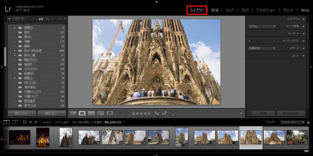 ※読み込みや写真の管理をするときは「ライブラリ」モジュールを選択しておく、とざっくり覚えておきましょう。