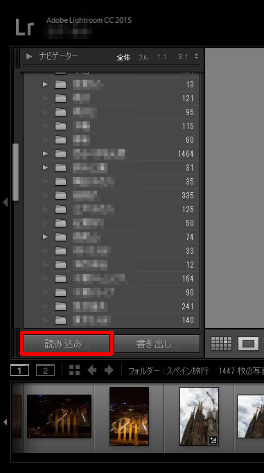 くどいかもしれませんが、ここでいう「写真の読み込み」とは、実際の写真をLightroom内に保存する訳ではなく、「○月○日に撮ったあの写真は××フォルダに入ってるよ」という情報をLightroomに渡すイメージです。