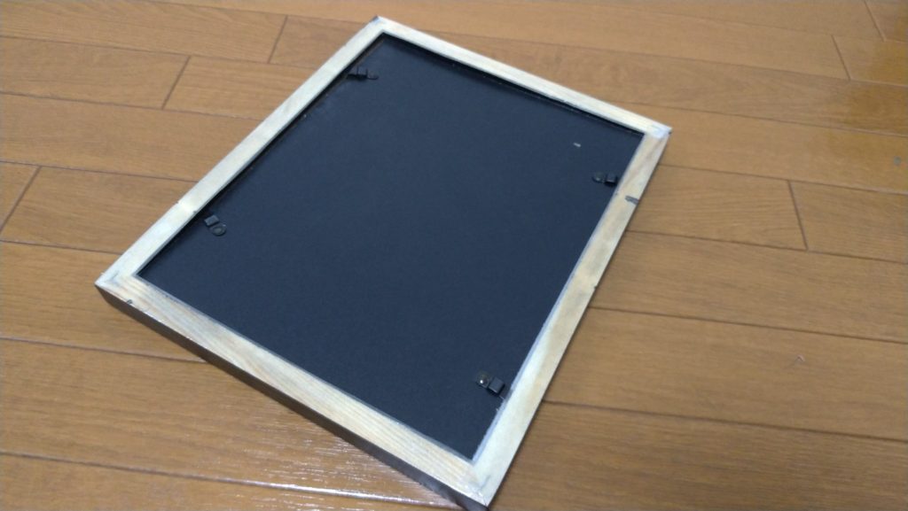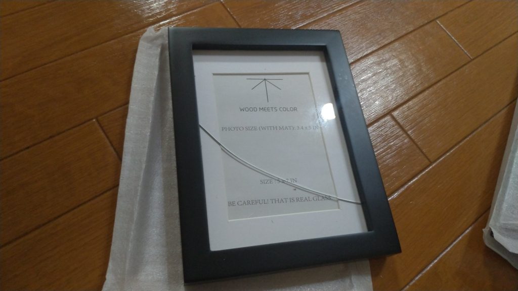 実際の商品はこんな感じ。額縁はマットな質感の黒色で、シンプルなのでどんな写真も合わせやすいと思います。木の継ぎ目とか、細かいところに若干の粗さが散見されますが、飾ってしまえば気になるポイントではなかったですね。