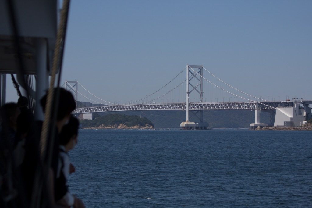 遠くに鳴門海峡の大鳴門橋が見えてくると乗客一同、身を乗り出して大注目です。