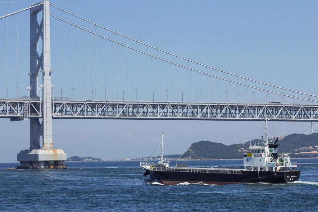 大鳴門橋に向かってゆくなんか勇ましい貨物船。