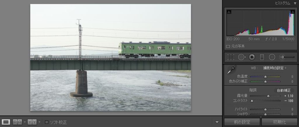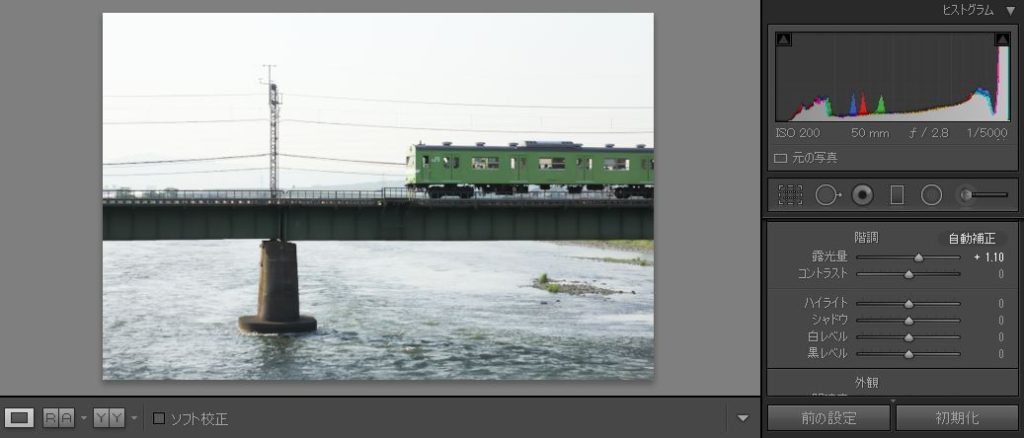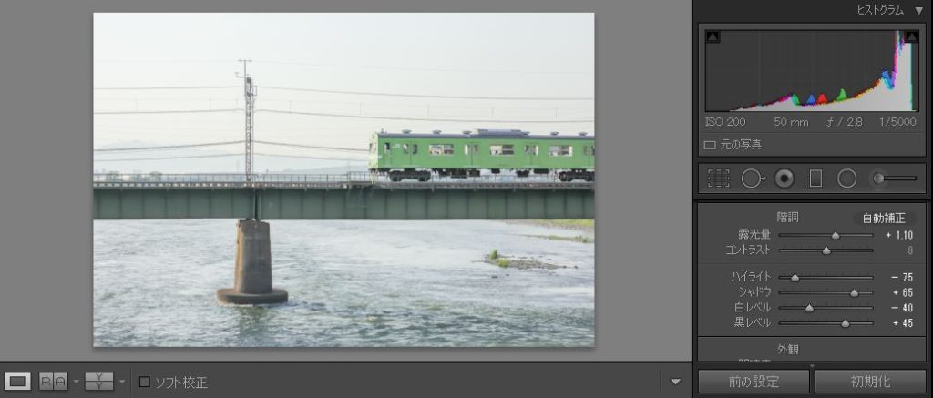それじゃあ早速レタッチの方、いってみましょう。例の如くlightroomを使用します。例に挙げた1枚目の電車の写真の制作過程をお伝えします。
